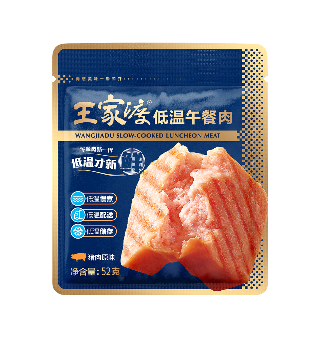 随着低温午餐肉时代的到来,常温午餐肉无论是从口感还是新鲜程度都已经无法满足消费者的需求了。王家渡真正关心消费者的需求,勇于创新,打破常规。借鉴米其林大厨推崇的低温慢煮工艺,不仅保障口感,而且还能牢牢锁水、锁鲜、锁住营养成分。一口下去,满满的幸福感。独创低温慢煮工艺,打开低温午餐肉低温保鲜新时代。荣获由中国肉类协会授予『低温午餐肉品类引领者』。